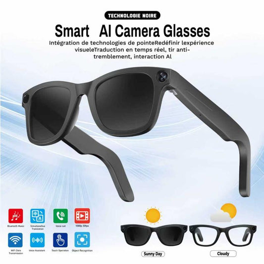 Evomi Touch-Control Bluetooth Smart Glasses Camera Withhd Cameras Bluetooth Voice Communicationlightweight Design Dual Interchangeablelenses Day Night Switch Surround Soundspeakers Device Wearable Bluetooth Glasses Black